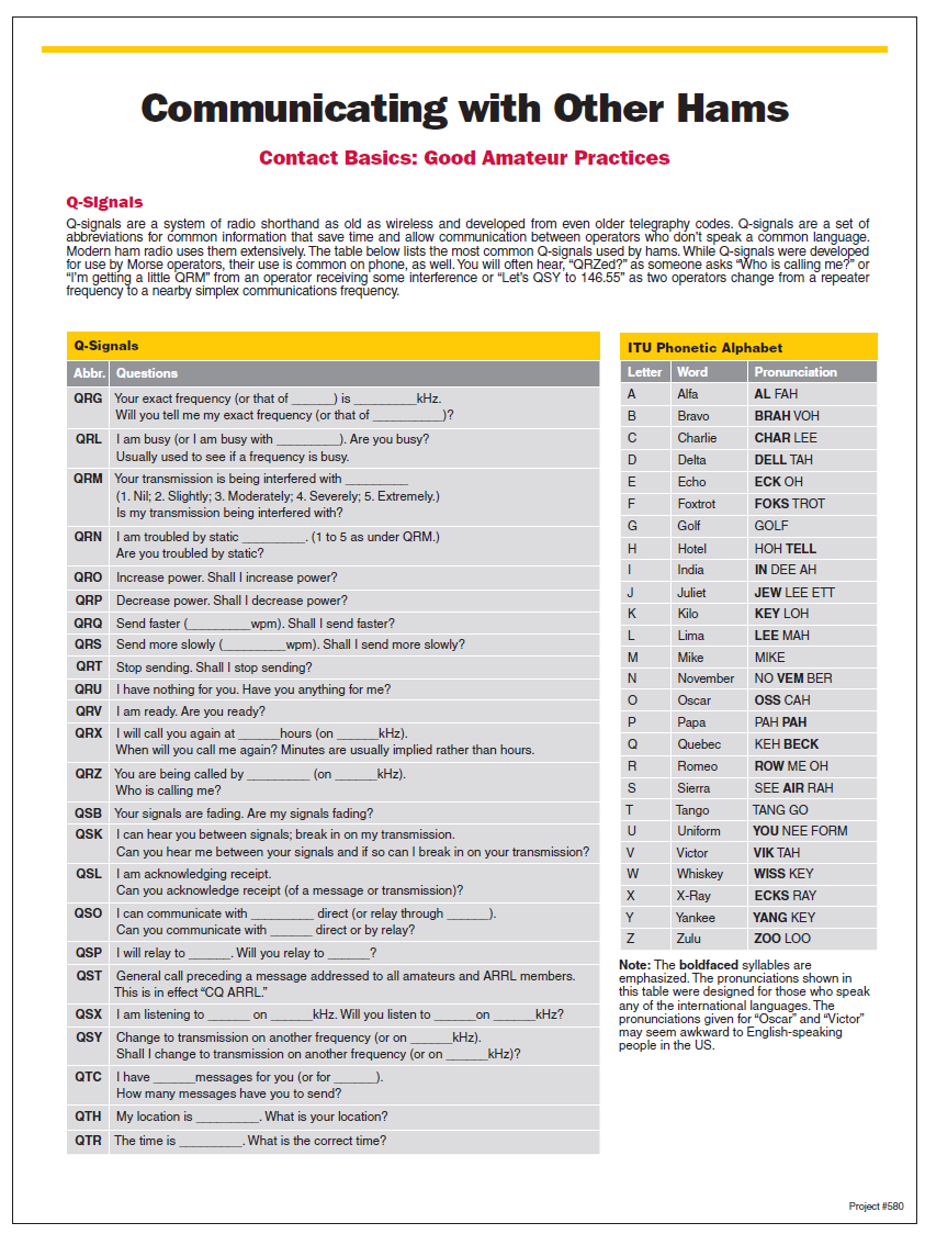 Communicating with Other Hams; Q-Signals